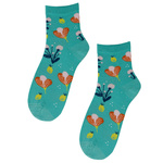 Turkusowe skarpetki dziewczęce w kwiaty