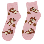 Różowe skarpetki dziewczęce w wiewiórki i żołędzie