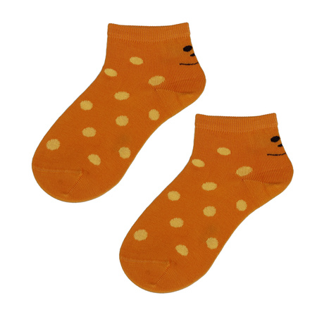 Pomarańczowe cienkie skarpetki dziewczęce z w kropki z buźką